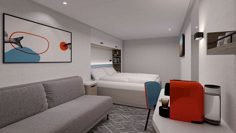 - offenes Hauptschlafzimmer mit Doppelbett (nicht auseinanderstellbar)