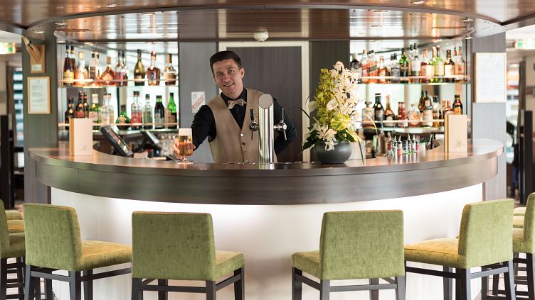Bei wunderbaren Aussichten entlang der schönsten europäischen Wasserstraßen lädt die Lido Bar auf dem Sonnendeck zu einem erfrischenden Cocktail, Bier oder Softdrink ein.