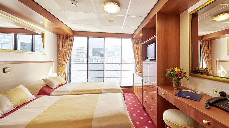 Zweibett außen, französischer Balkon, Oberdeck, achtern (EK03)