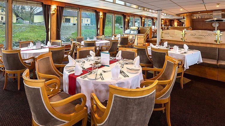 Kulinarische Köstlichkeiten genießen Sie im lichtdurchfluteten Panorama Restaurant von MS Prinzessin Isabella. Es befindet sich am Heck des Schiffes und ist mit großen Panoramafenster ausgestattet. Zum Frühstück dürfen Sie sich auf ein umfangreiches Buffet freuen, während zum Mittag- und Abendessen mehrgängige Menüs serviert werden.