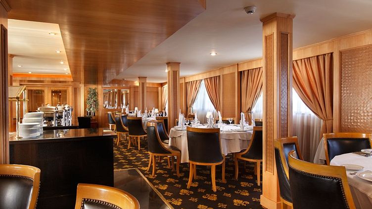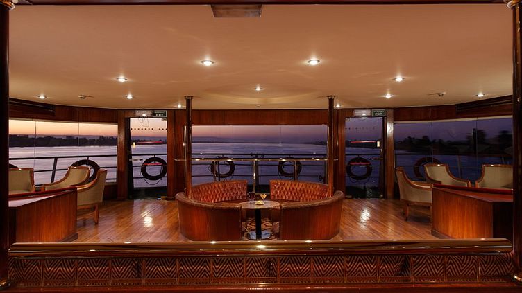 An Bord befindet sich ein elegantes Hauptrestaurant, das internationale und ägyptische Küche serviert. Die Mahlzeiten werden als Buffet oder à la carte angeboten. Für entspannte Stunden stehen eine Lounge-Bar und ein überdachtes Sonnendeck mit Bar zur Verfügung.