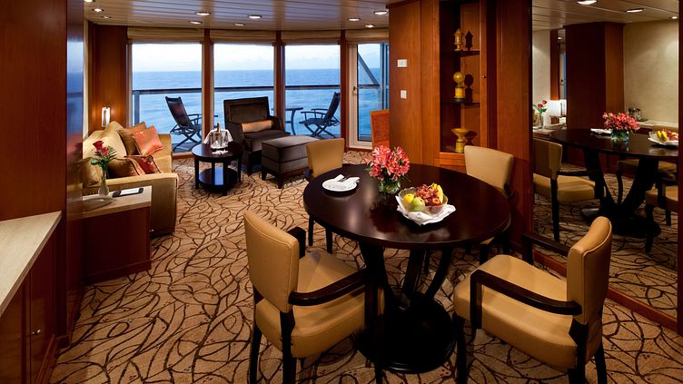 - Zusätzliche Services/Leistungen: Exklusiver Zugang zu den Retreat-Bereichen, Retreat Concierge Service vor und während der Kreuzfahrt, Priority Check-In und Check-Out, reservierter Platz im Theater während der Chic Nights, exklusiver Zugang zum Restaurant ,,Luminae at The Retreat’’, 24/7 Roomservice, freie Platzwahl in den Spezialitäten Restaurants, Flasche Champagner zur Begrüßung auf der Suite, täglich frische Früchte auf Anfrage, Nutzung von Minibar und Kaffeemaschine, Shoe Shine Service, nahezu alle Getränke in den Bars an Bord