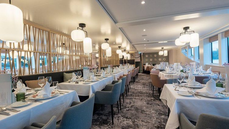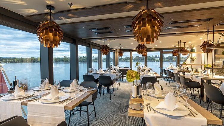 Kulinarische Höhepunkte werden Ihnen bei bester Aussicht aus den großen Panoramafenstern im Vier Jahreszeiten Restaurant beschert. Neben einem reichhaltigen Frühstücksbuffet am Morgen erwarten Sie zum Mittag- und Abendessen mehrgängige Menüs. Ein weiteres kulinarisches Highlight an Bord der MS Antonia ist das Spezialitäten Restaurant am Heck. Hier werden Ihnen ohne Aufpreis besondere Menüs in gemütlichem Ambiente serviert.