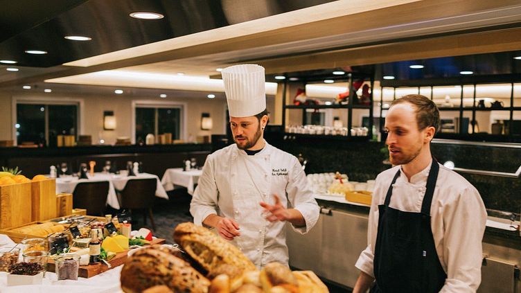 An Bord der MS Spitsbergen finden Sie ein Restaurant, in dem Sie eine große Auswahl an kulinarischen Genüssen haben. Die Köche an Bord bereiten Ihnen Menüs zu, die unter anderem die reiche, norwegische und nordische Tradition widerspiegeln. Gerne werden regionale Produkte verwendet. Freuen Sie sich zudem auf eine gute, aromenreiche internationale Küche.