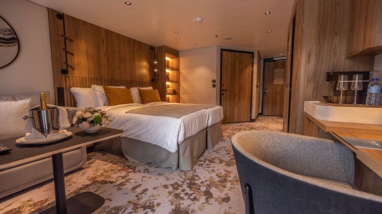 - Ausstattung: Doppelbett, Loungebereich mit Sofa und Tisch, Schreibtisch/Schminktisch, Kaffeemaschine, Fernseher mit TV-System, geräumiger Schrankplatz, luxuriöses Badezimmer mit Dusche und WC, individuell regulierbare Klimaanlage