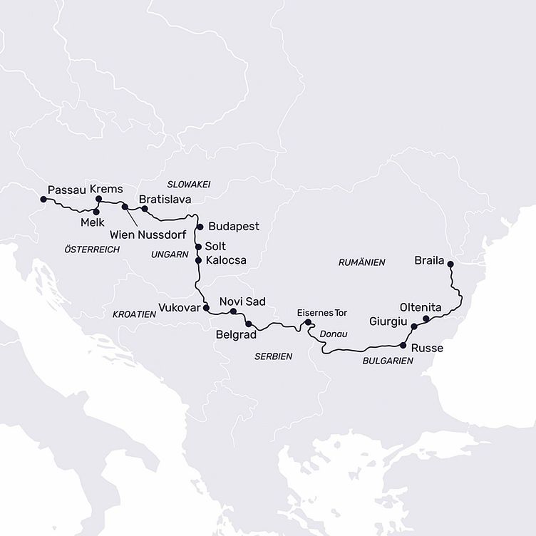 Große Donau Kreuzfahrt 14 Nächte. Ab Passau (Deutschland) bis Passau (Deutschland)