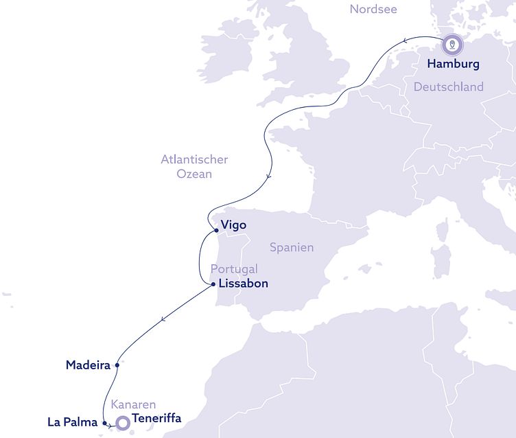 Ab Hamburg (Deutschland) bis Teneriffa (Spanien)