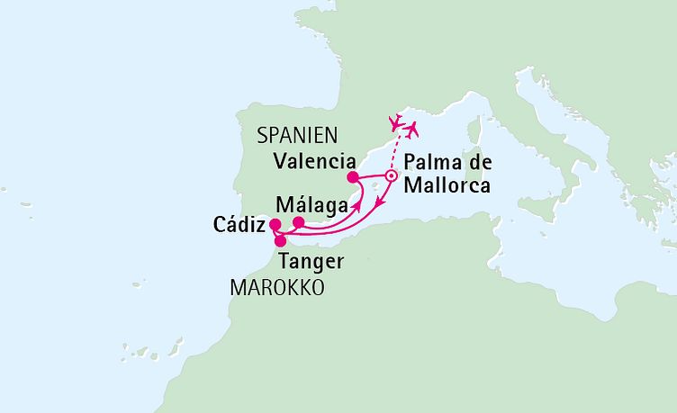 Mandelblüte Mallorca und MS4 Südspanien mit Marokko 10 Nächte. Ab Anreise - Palma de Mallorca (Spanien) bis Palma de Mallorca (Spanien)