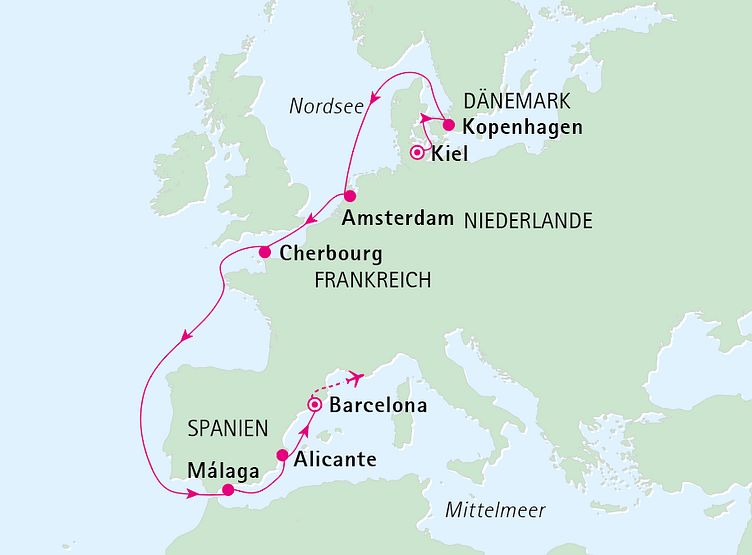 Ab Kiel (Deutschland) bis Barcelona (Spanien)