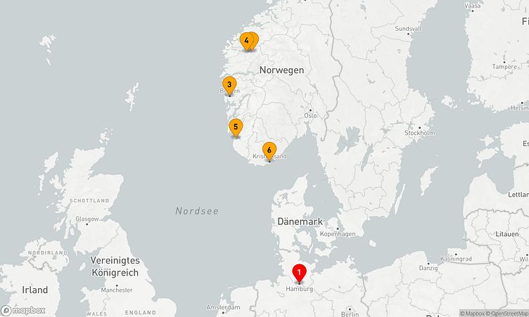 An Häfen wie Hamburg, Bergen und Haugesund haben Sie die Möglichkeit, die Region auf besondere Weise zu erkunden und Neues zu entdecken.
