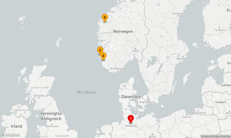 Während der Route halten Sie unter anderem in den Häfen von Hamburg, Hamburg und Ålesund, um in das Flair und die Besonderheiten der Umgebung einzutauchen.