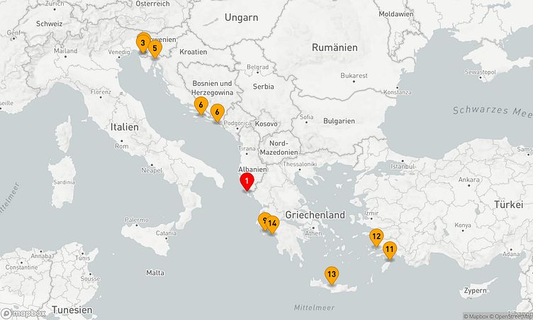 Ihre Route führt Sie unter anderem zu den faszinierenden Häfen von Korfu, Rijeka und Zakynthos, wo Sie die Atmosphäre und das Leben vor Ort spüren können.