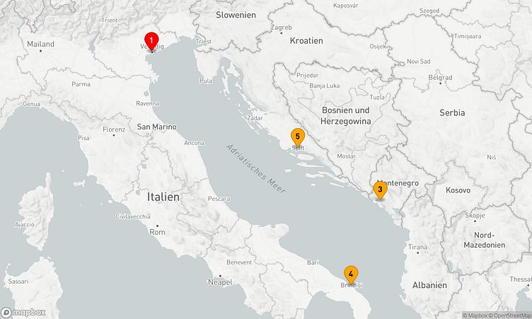 Auf der 5-tägigen Route „Adriatische Entdeckungsreise“ erwartet Sie eine unvergessliche Adria-Kreuzfahrt mit beeindruckenden Landschaften und faszinierenden Eindrücken.