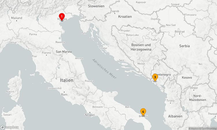 Auf dieser Reise erwarten Sie Stopps in den Häfen von Venedig, Kotor und Brindisi, wo Sie lokale Highlights und unvergessliche Eindrücke sammeln.
