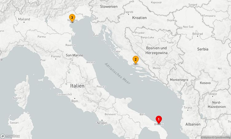 Ihre Reise beginnt in Brindisi (Italien). Am 30. Oktober 2026 legen Sie ab und erreichen nach zwei Tagen, am 01. November 2026, den Zielhafen Venedig (Italien).