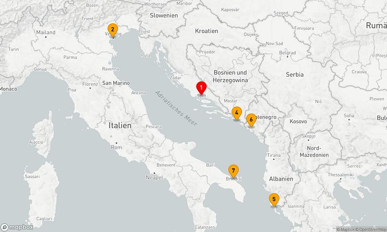 Auf dieser Reise erwarten Sie Stopps in den Häfen von Split, Venedig und Korfu, wo Sie lokale Highlights und unvergessliche Eindrücke sammeln.