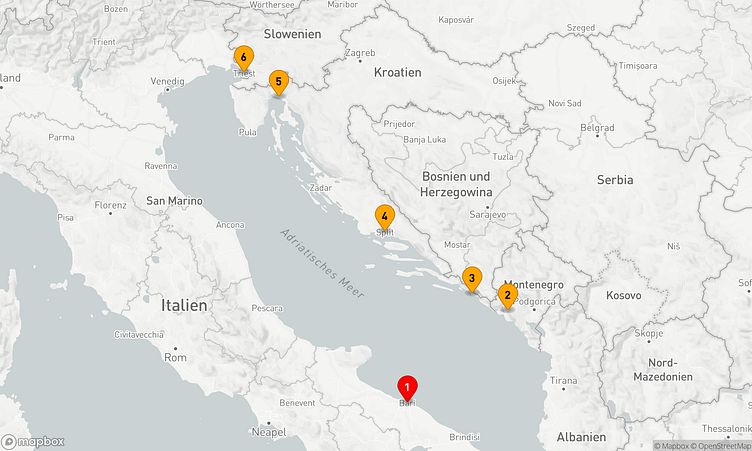 Während der Reise besuchen Sie unter anderem die Häfen von Bari, Kotor und Split, die Ihnen spannende Eindrücke und einzigartige Entdeckungen bieten.