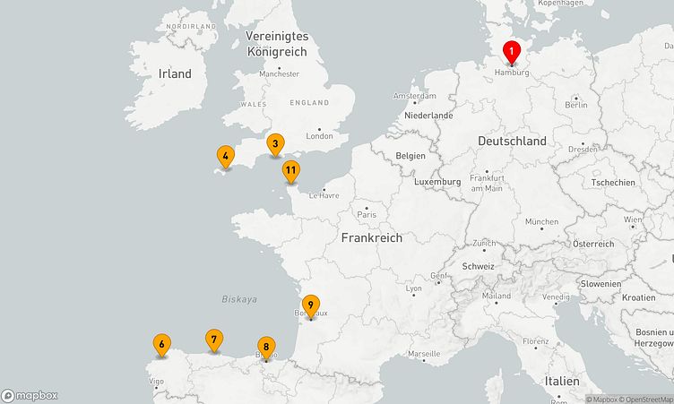 Auf Ihrer Reise besuchen Sie unter anderem die Häfen von Hamburg, Falmouth und Bilbao, wo spannende Eindrücke von Land und Kultur auf Sie warten.
