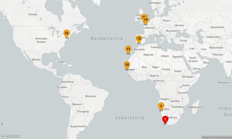 Die Reise startet in Kapstadt (Südafrika). Am 13. April 2026 verlassen Sie den Hafen und nach 25 Tagen, am 08. Mai 2026, erreichen Sie Ihren Zielhafen, New York City (Vereinigte Staaten).