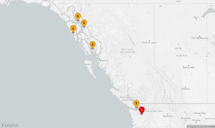 Von Seattle (Vereinigte Staaten) aus brechen Sie am 22. Juni 2026 auf, um nach 7 Tagen den Zielhafen Seattle (Vereinigte Staaten) zu erreichen, wo Ihre Reise endet.