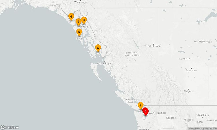 Auf Ihrer Reise besuchen Sie unter anderem die Häfen von Seattle, Juneau und Sitka, wo spannende Eindrücke von Land und Kultur auf Sie warten.