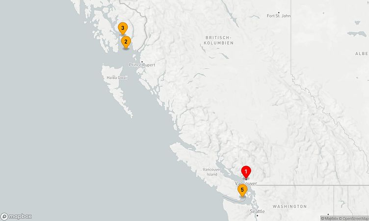 Auf dieser Reise erwarten Sie Stopps in den Häfen von Vancouver, Inside Passage und Victoria, wo Sie lokale Highlights und unvergessliche Eindrücke sammeln.