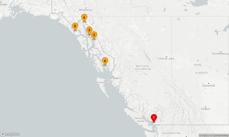 Die Reiseroute beginnt am 06. Juni 2026 in Vancouver (Kanada) und führt sie vom 06. Juni 2026 bis zum 13. Juni 2026 (7 Tage) nach Vancouver (Kanada).