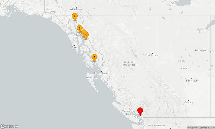 Während der Route halten Sie unter anderem in den Häfen von Vancouver, Tracy Arm und Skagway, um in das Flair und die Besonderheiten der Umgebung einzutauchen.