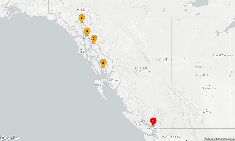 Auf Ihrer Reise besuchen Sie unter anderem die Häfen von Vancouver, Juneau und Endicott Arm, die Ihnen spannende Eindrücke und unvergessliche Entdeckungen ermöglichen.