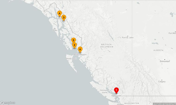 Freuen Sie sich auf Anläufe in Häfen wie Vancouver, Inside Passage und Juneau, die Ihnen authentische Einblicke und besondere Erlebnisse bieten.