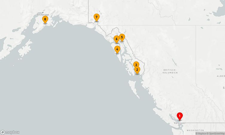 Am 08. Mai 2026 starten Sie in Vancouver (Kanada) und legen nach 7 Tagen am 15. Mai 2026 in Seward (Vereinigte Staaten) wieder an.