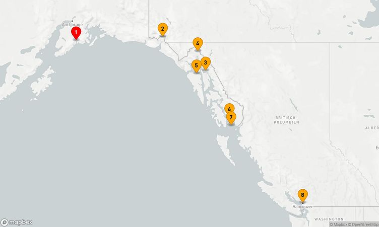 Ihre Route führt Sie unter anderem zu den faszinierenden Häfen von Seward, Hubbard-Gletscher und Skagway, wo Sie die Atmosphäre und das Leben vor Ort spüren können.