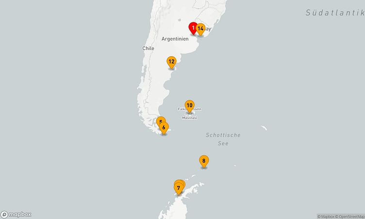 Auf Ihrer Route besuchen Sie unter anderem die Häfen von Buenos Aires, Kap Hoorn und Gerlache-Straße, wo spannende Einblicke in Land und Kultur auf Sie warten.