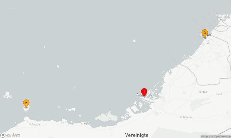 Startpunkt ist Abu Dhabi (Vereinigte Arabische Emirate) am 03. Dezember 2025. Nach drei erlebnisreichen Tagen erreichen Sie den Zielhafen Dubai (Vereinigte Arabische Emirate), wo Ihre Reise endet.