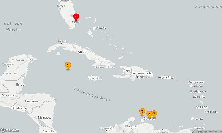 Diese Kreuzfahrt führt Sie zu den faszinierenden Häfen von Fort Lauderdale, George Town und Willemstad, die mit einzigartigen Sehenswürdigkeiten und lebendigen Eindrücken auf Sie warten.