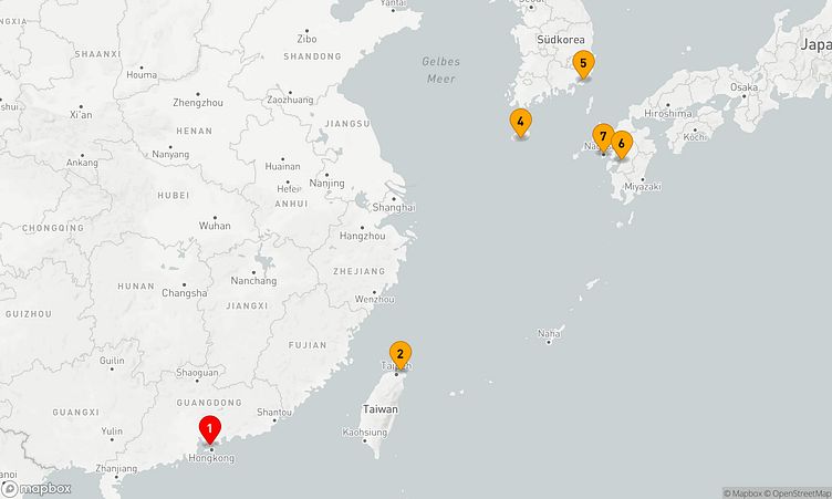 Auf Ihrer Reise besuchen Sie unter anderem die Häfen von Hongkong, Keelung und Busan, wo spannende Eindrücke von Land und Kultur auf Sie warten.