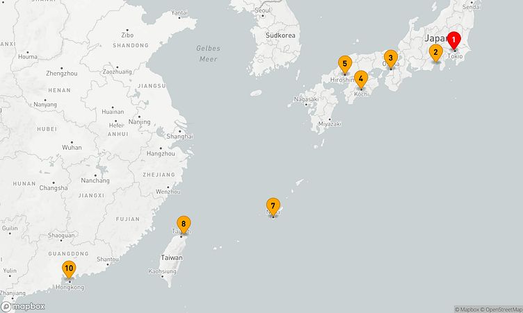 Ihre Reise beginnt am 29. November 2027 in Tokyo (Japan) und endet nach 10 Tagen am 09. Dezember 2027 im Hafen von Hongkong (China).