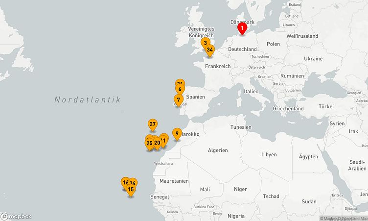 Während Ihrer Reise legen Sie unter anderem in den Häfen von Hamburg, Arrecife / Lanzarote und Porto Novo an, wo spannende Einblicke in Land und Kultur auf Sie warten.