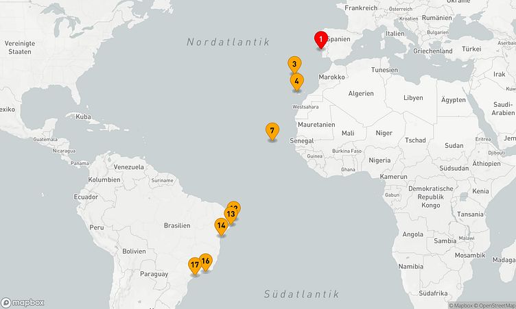 Atlantische Entdeckungsreise von Europa nach Brasilien