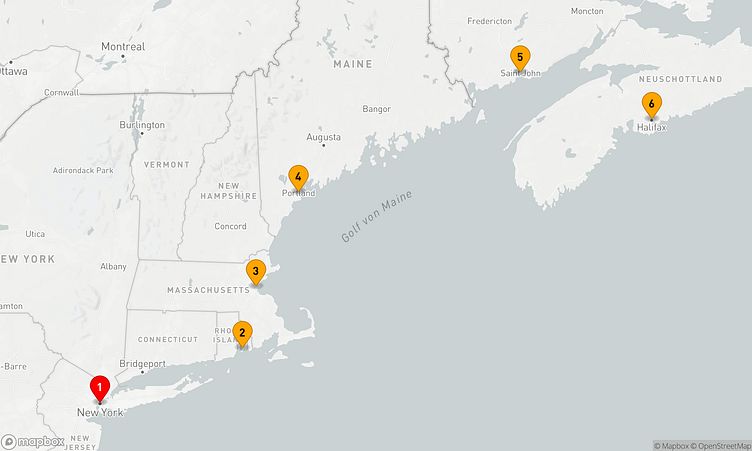 Während der Route halten Sie unter anderem in den Häfen von New York City, Newport und Portland, um in das Flair und die Besonderheiten der Umgebung einzutauchen.