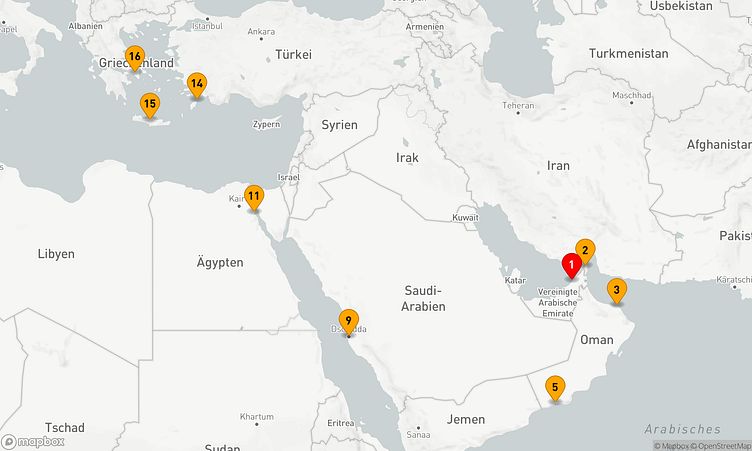 Diese Kreuzfahrt bringt Sie zu den beeindruckenden Häfen von Dubai, Maskat und Safaga, die mit einzigartigen Sehenswürdigkeiten und lebendigen Eindrücken auf Sie warten.