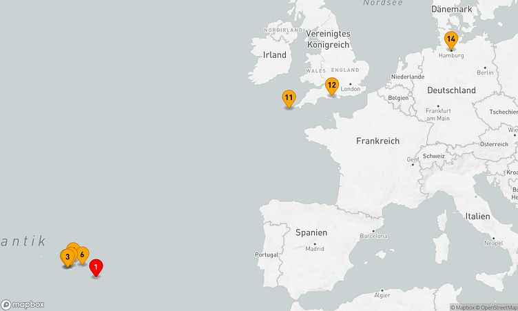 Von Hamburg (Deutschland) aus brechen Sie am 31. März 2027 auf, um nach 13 Tagen den Zielhafen Ponta Delgada - Sao Miguel (Portugal) zu erreichen, wo Ihre Reise endet.