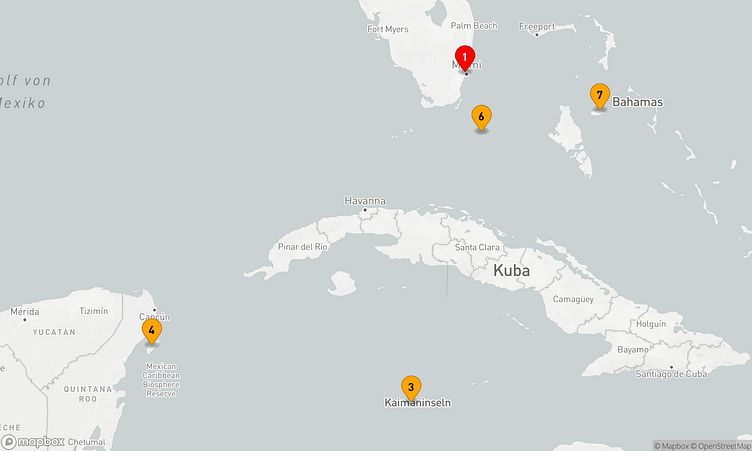 Auf Ihrer Reise besuchen Sie unter anderem die Häfen von Miami, George Town und Bimini, wo spannende Eindrücke von Land und Kultur auf Sie warten.
