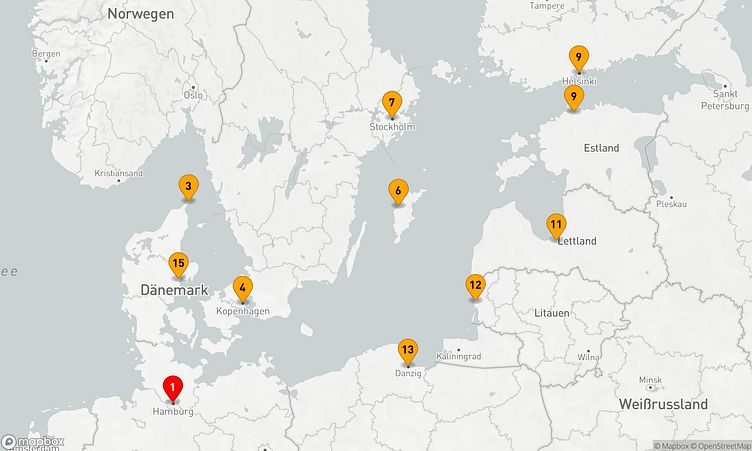 Während der Route halten Sie unter anderem in den Häfen von Hamburg, Visby und Helsinki, um in das Flair und die Besonderheiten der Umgebung einzutauchen.
