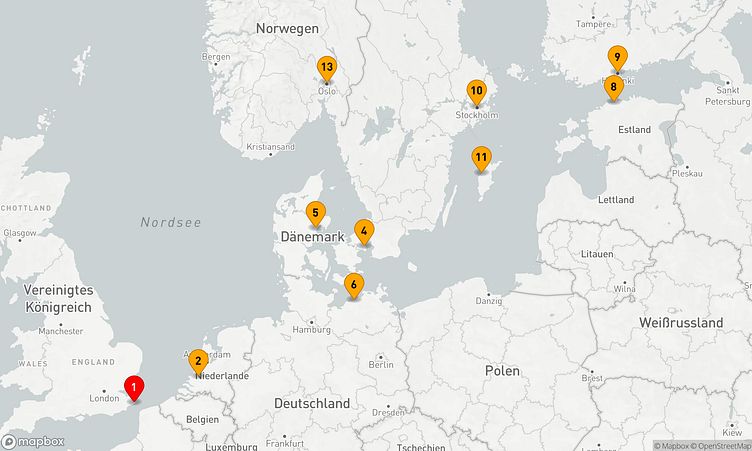 Während der Fahrt besuchen Sie unter anderem die Häfen von Dover, Kopenhagen und Tallinn, die Ihnen spannende Eindrücke und einzigartige Entdeckungen ermöglichen.