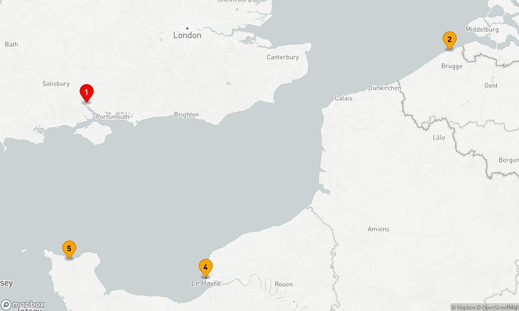 Freuen Sie sich auf Anläufe in Häfen wie Southampton, Zeebrügge und Cherbourg-Octeville, die Ihnen authentische Einblicke und besondere Erlebnisse bieten.