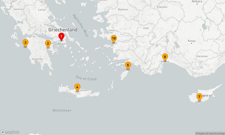 Ihre Kreuzfahrt führt Sie zu den beeindruckenden Häfen von Athen (Piräus), Nafplio und Heraklion, die mit einzigartigen Sehenswürdigkeiten und lebendigen Eindrücken auf Sie warten.