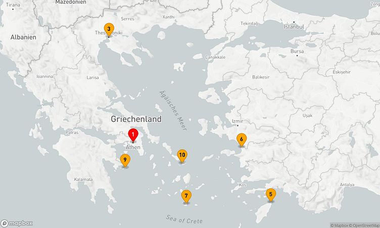 Während der Route halten Sie unter anderem in den Häfen von Athen (Piräus), Thessaloniki und Kusadasi, um in das Flair und die Besonderheiten der Umgebung einzutauchen.