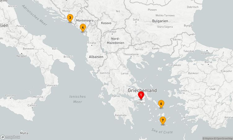Während der Reise besuchen Sie unter anderem die Häfen von Athen (Piräus), Dubrovnik und Mykonos, die Ihnen spannende Eindrücke und einzigartige Entdeckungen bieten.