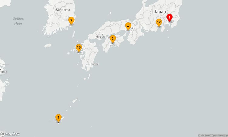Ihre Reise führt Sie unter anderem zu den Häfen von Tokyo (Yokohama), Kobe und Busan, wo spannende Eindrücke von Land und Kultur auf Sie warten.